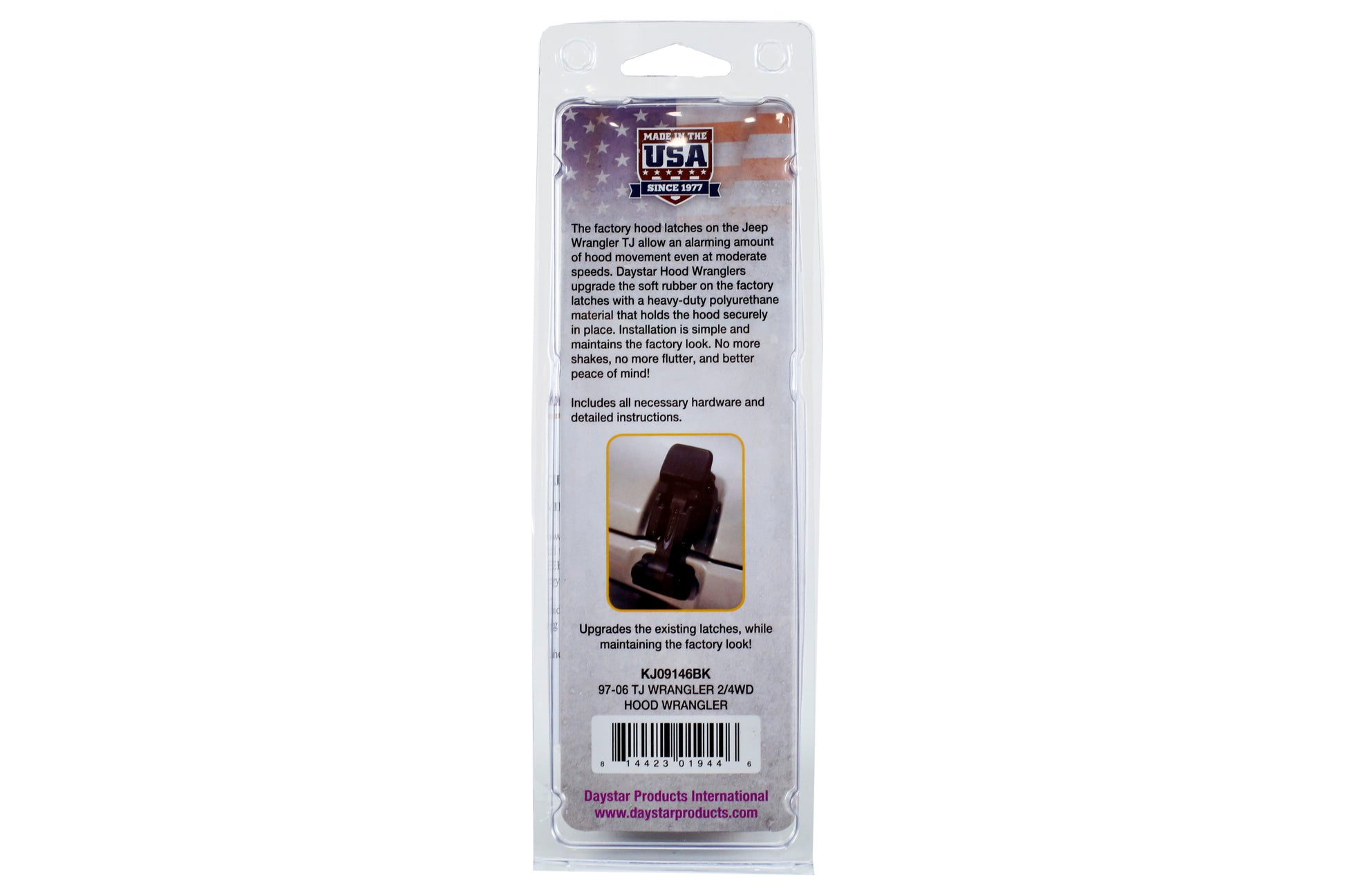 The Daystar Hood Latch kit has been designed and crafted out of heavy-duty polyurethane material. The factory hood latches are made out of rubber, and after a few years of extreme weather, as well as driving conditions, those hood latches will become weak, they will stretch, and this will allow for annoying, excess movement in the hood. If your vehicle is lifted, this will cause even more movement in the hood as air is forced under the car which will push the hood up.