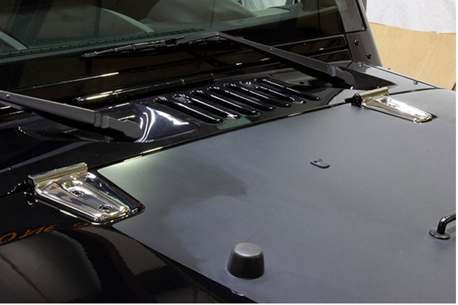 Our hood hinge overlay for your JK is polished to a mirror finish. Each set is inspected for fit, finish, and function. It comes complete with all hardware needed for installation. An occasional waxing will keep your polished finish looking brand new. All Kentrol products come with a limited lifetime warranty.