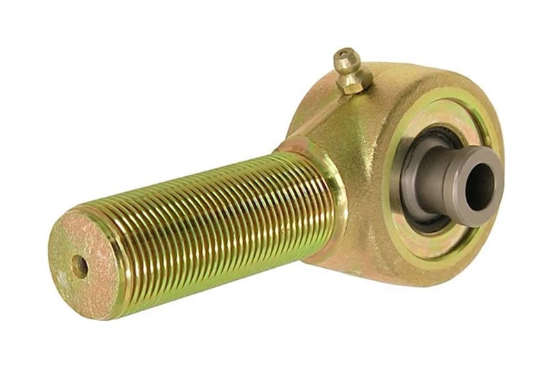 This narrow 2" forged Johnny Joint is a male rod end that accepts Johnny Joint internals that are unique to this narrow joint. This version features a one-piece high-performance bushing, .5625" thru hole, a 1.850" mounting width, 2 1/4" of 1"-14 left hand threads on the shank and is greaseable through the outer shell. Finished in gold zinc plating.